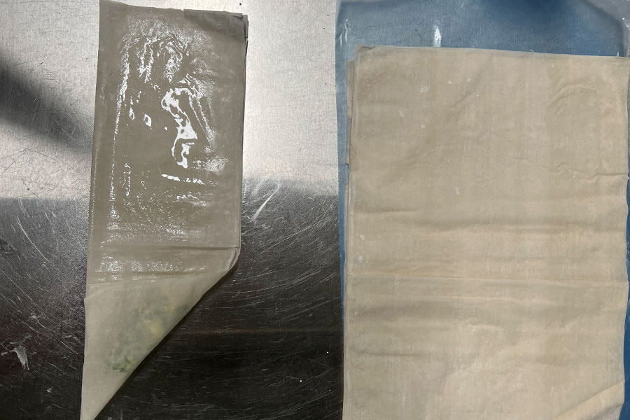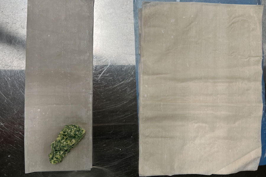 Take one sheet filo pastry, fold in half on longest side to make a long rectangle.
