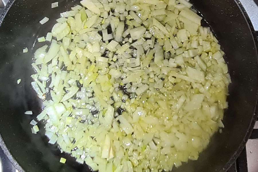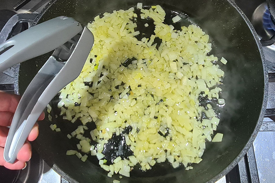 Add the 1 tablespoon olive oil and cook the 1 diced onion until soft.