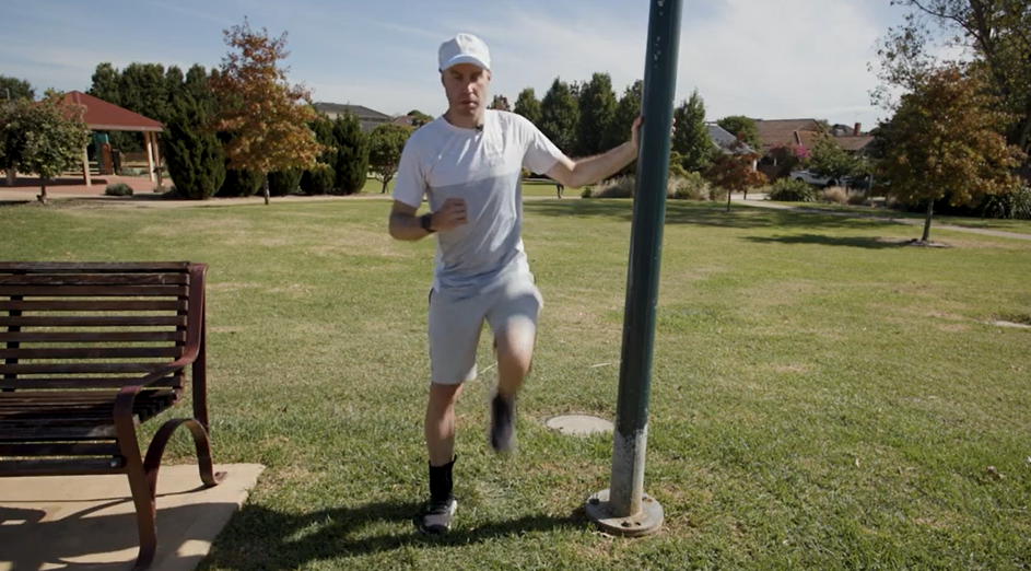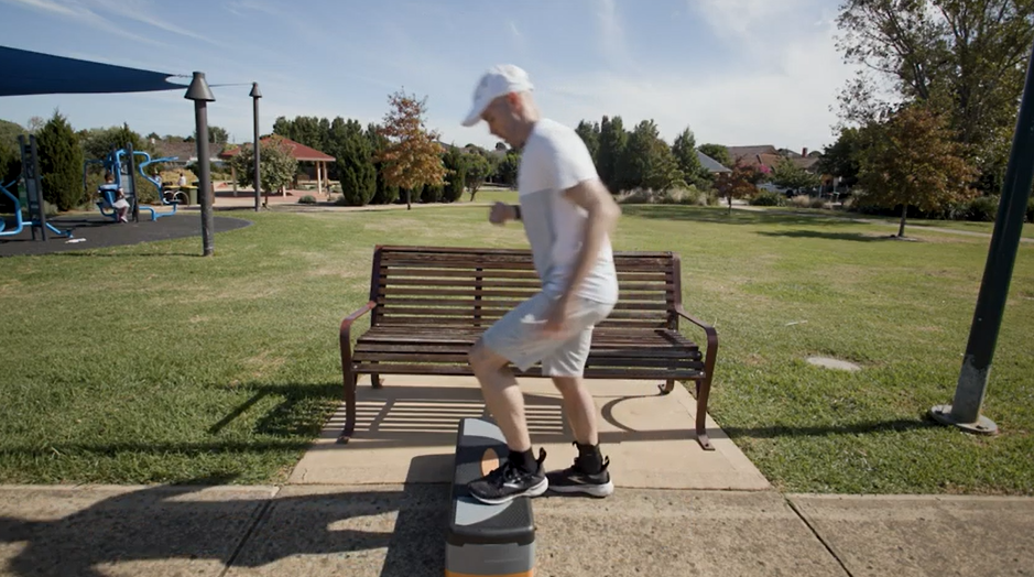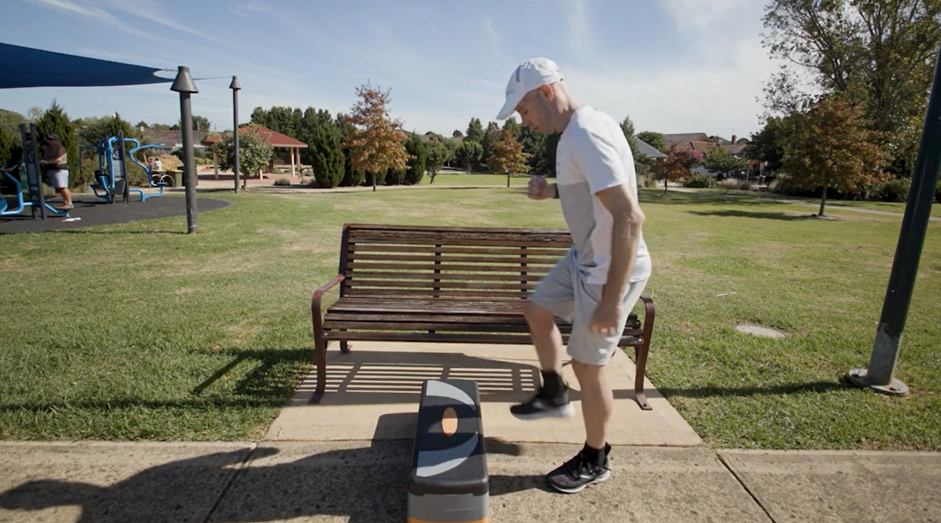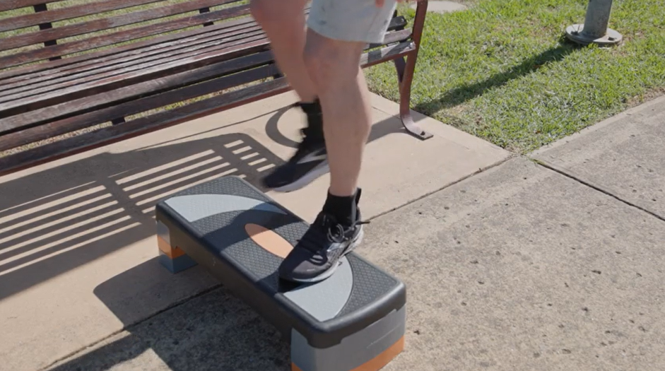 Alternate between fast step ups and normal speed step taps for a total of 5 minutes
