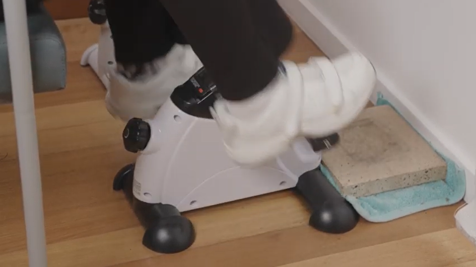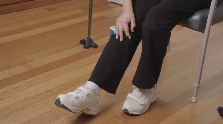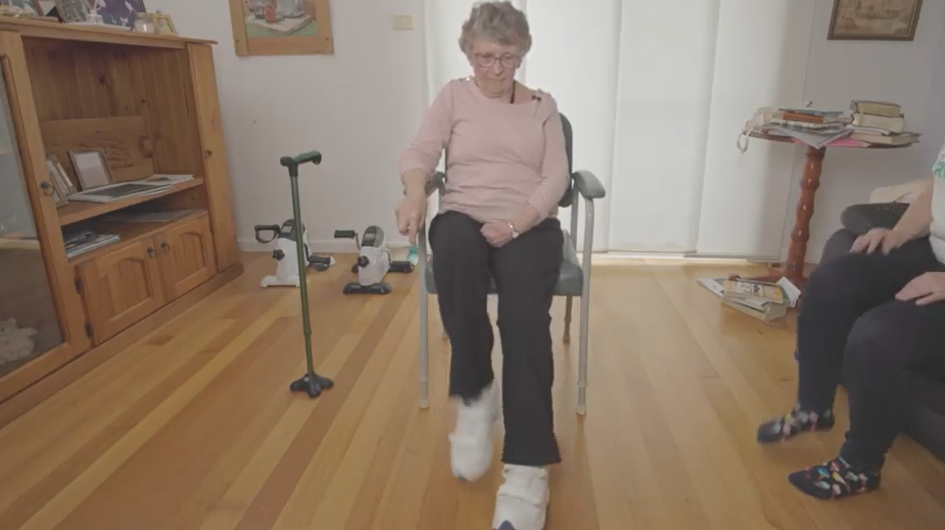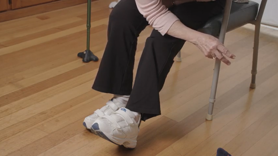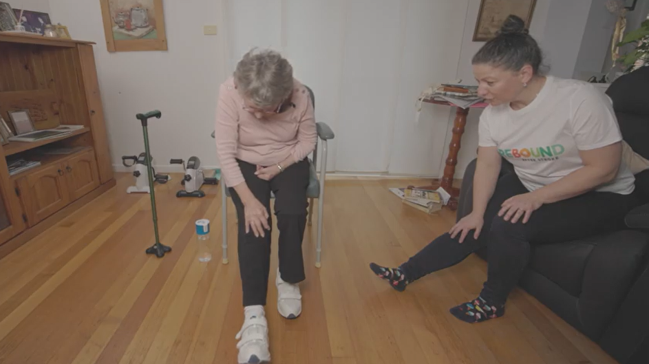 March on the spot in sitting. Can do with one or both legs. Do this for 30 seconds to 1minute.