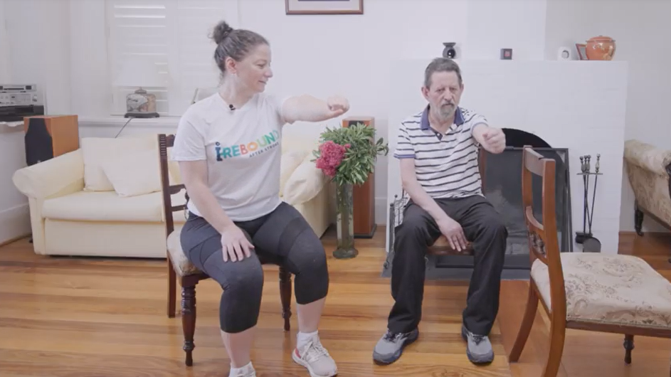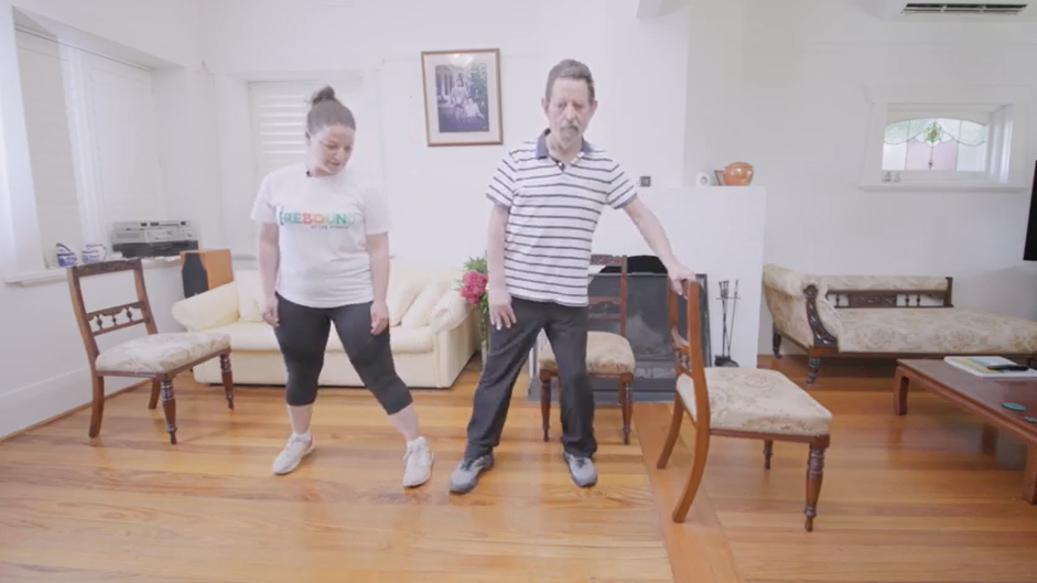 Have another chair on your less affected side to hold onto if needed.